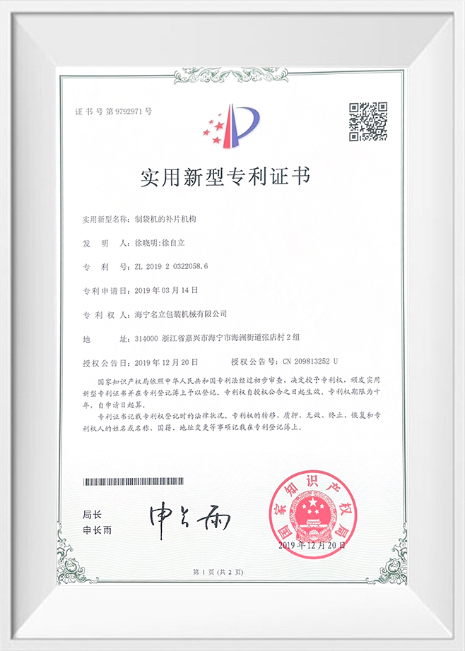 制袋机的补片机构